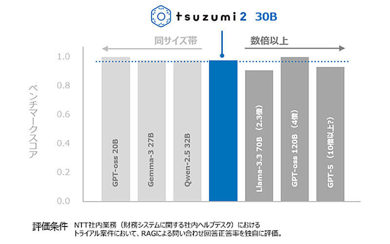 NTT株式会社は、軽量でありながら高性能な日本語処理性能を持つ大規模言語モデル(LLM)「tsuzumi 2」の提供を2025年10月20日に開始しました。