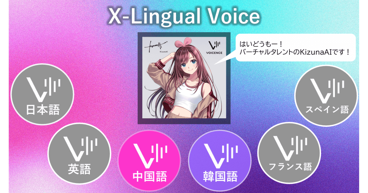 「VOICENCE」は、NTT人間情報研究所の音声処理技術を活用し、テキスト入力により実演家の声色のまま、AI音声合成および多言語変換を行います。