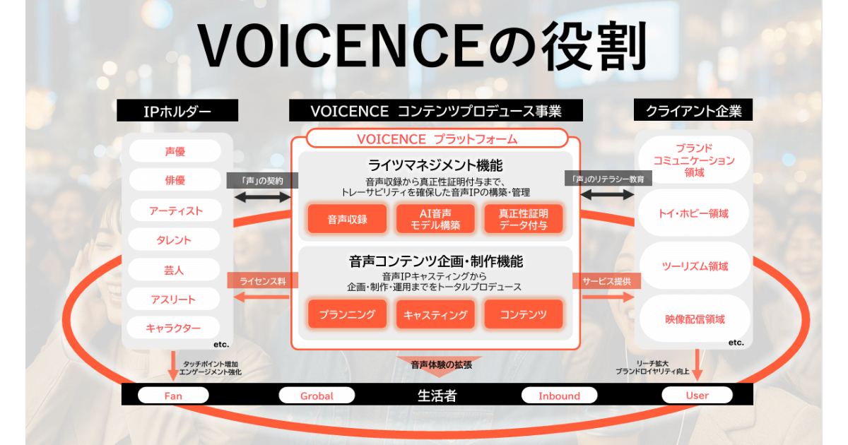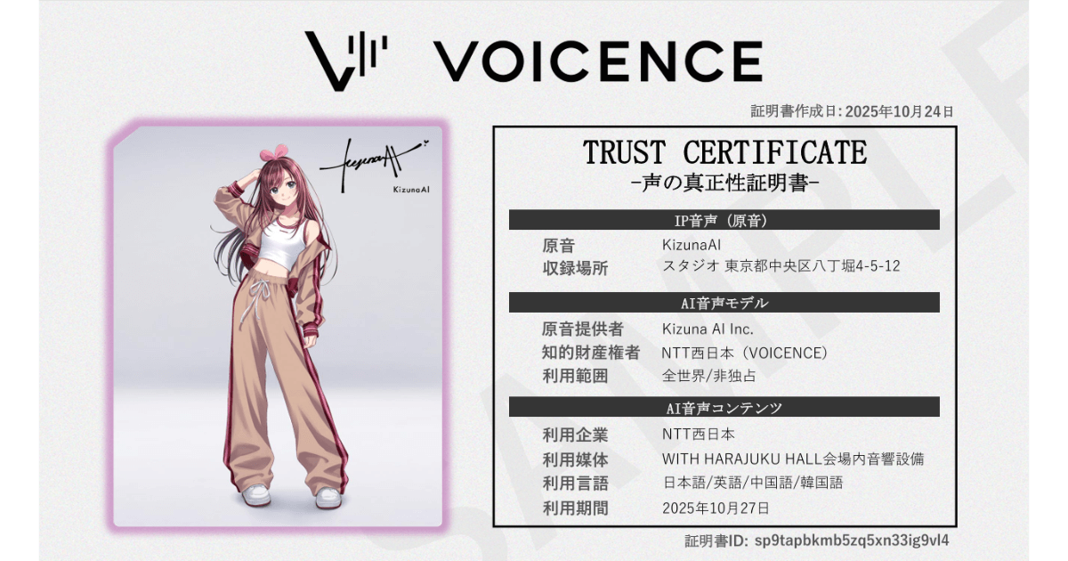 NTT西日本株式会社は、声優・俳優・アーティスト・芸人などの実演家の声を守り、声の価値を高める音声AI事業「VOICENCE(ヴォイセンス)」を2025年10月27日(月)より開始したことを発表しました。