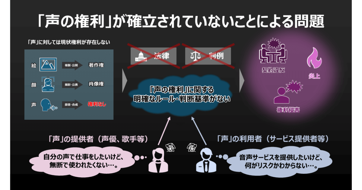 これにより、実演家の声を守ると同時に声を正しく活用し、経済・社会に新たな価値をもたらす正規ライセンス市場を整備することで、企業やクリエイターによる健全な「音声IP」の活用を促進します。