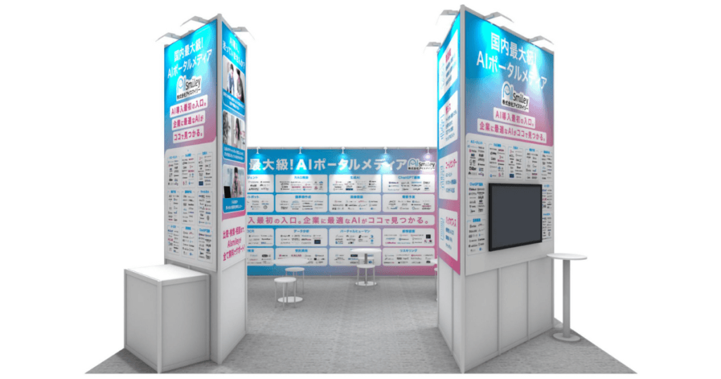会場では、最新のAIソリューションやニュース等を集めるAIポータルメディア「AIsmiley」活用方法のご案内と、AI導入のご相談を受け付けております。皆さまのご来場を心よりお待ちしております。