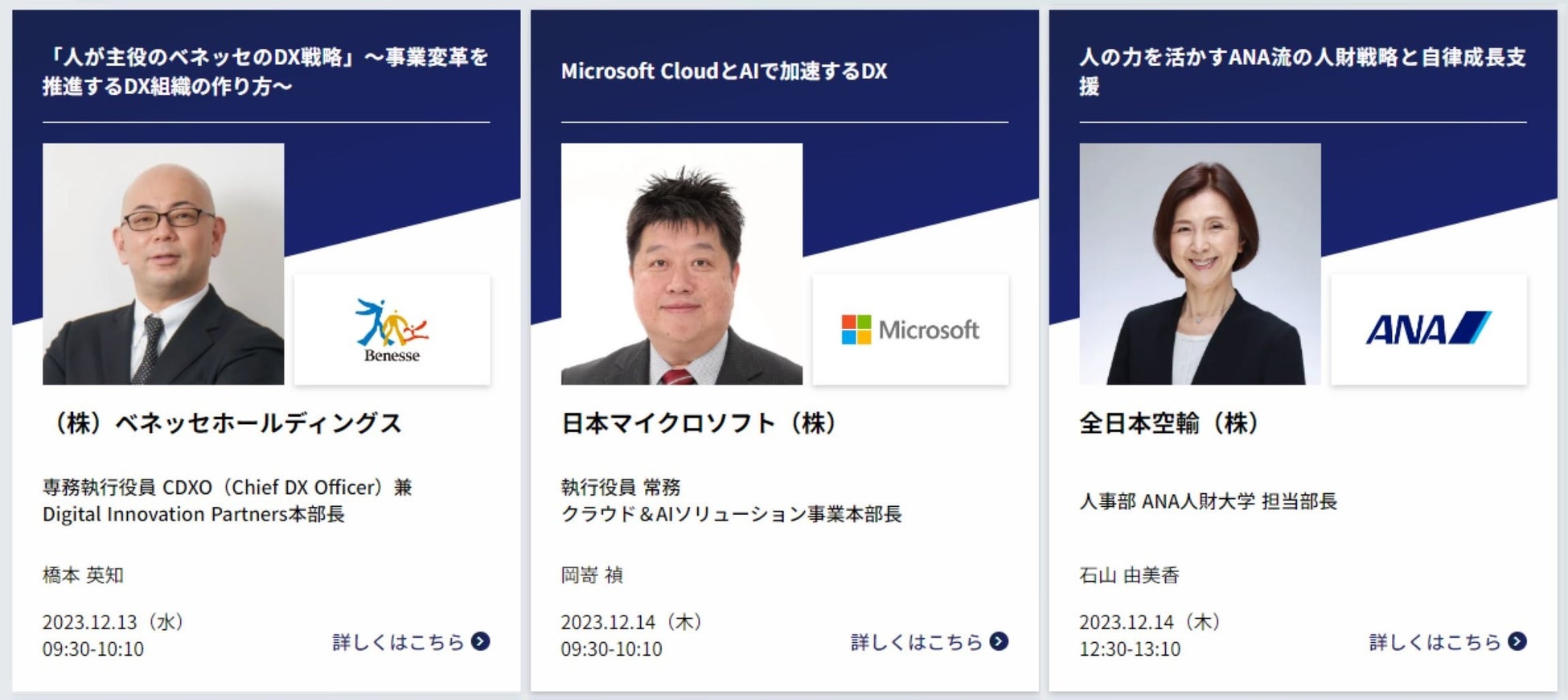 また併催セミナーでは、Twitter Japan、日本マイクロソフト、ソフトバンク、ANA、カルビーなど業界トップ企業の役員などが連日登壇。DX化、働き方改革、経営課題解決の最新事例を学べます。