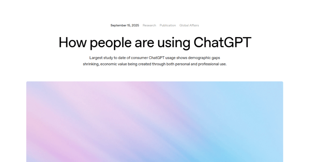 OpenAIは、過去最大規模となった今回の調査結果により、AIを誰がどのように使用しているかだけでなく、AIが人々の仕事や日常生活の中心となりつつあり、実際の経済価値をどのように生み出しているかを示したとコメントしました。