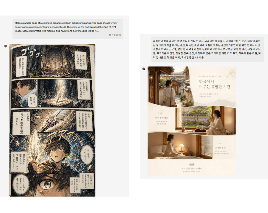 これまで、画像生成モデルは英語などのラテン文字の言語では安定していましたが、それ以外の言語では精度が下がる傾向にありました。多言語理解の強化および非ラテン文字の表現精度向上により、大幅な改善が見られています。特に日本語、韓国語、中国語、ヒンディー語、ベンガル語での改善が顕著で、英語以外のテキストでも、自然で読みやすい表現が可能です。