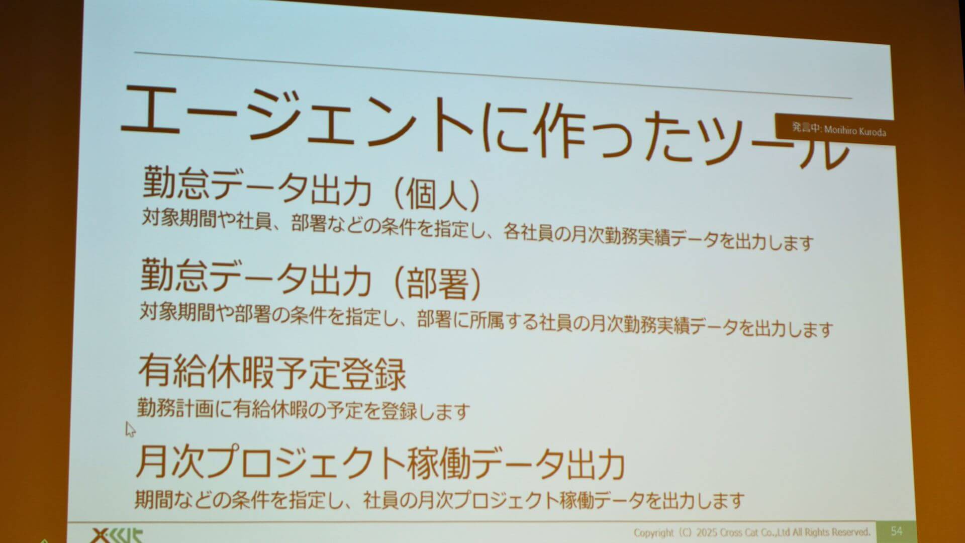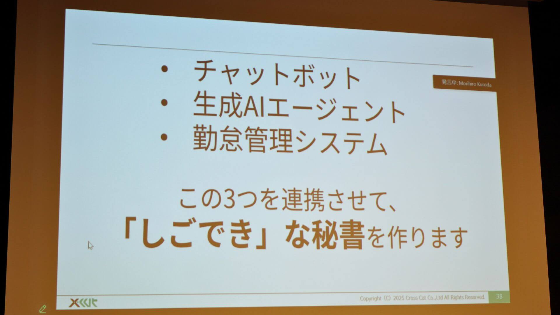 株式会社クロスキャット DX推進室 チーフフェローの岩本 禎史氏は、超優秀!勤怠管理と生成AIエージェントをつないでみたら「しごでき」な秘書になった!というテーマで登壇しました。