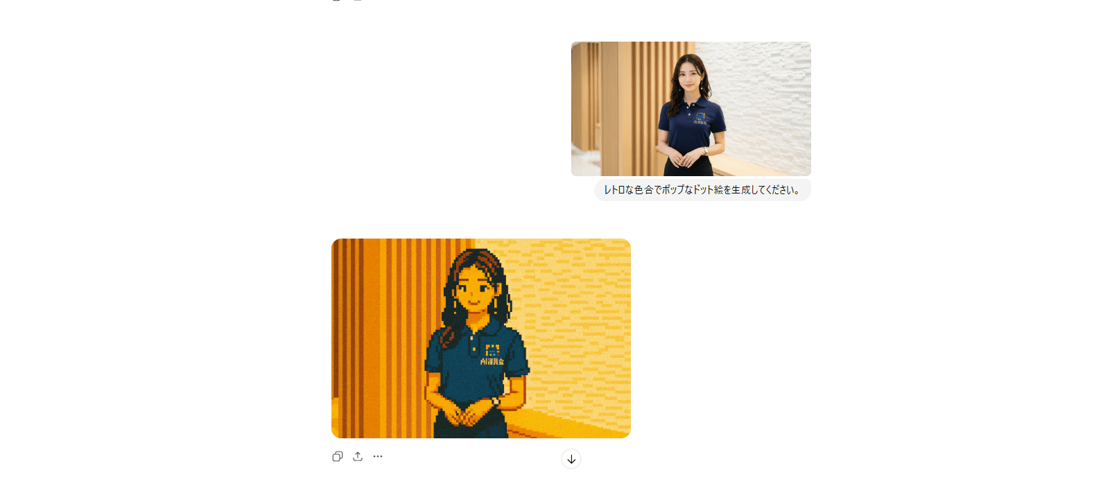 プロンプト例:「添付された画像を、Everskiesのピクセルアートスタイルでドット絵にしてください。人物の髪型、服装、ポーズを再現してください」「この写真をポケモン風ドット絵に変換してください」