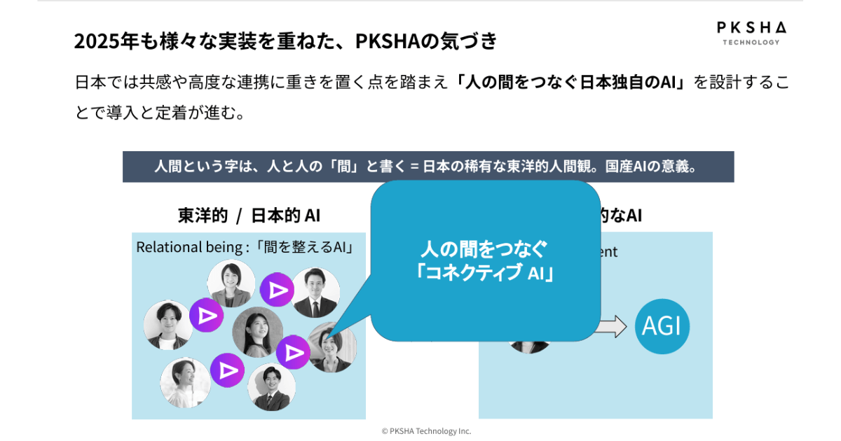 2025年、AIは「実用」のフェーズへと完全に移行しました。その中で、PKSHAが掲げた「コネクティブAI」や「AI Powered Worker」という概念は、日本独自のAI活用の解像度を一段階高めるものと言えるでしょう。