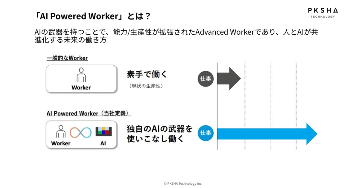 上野山氏は、AIを不安の対象ではなく、「働く喜びや希望を増幅する技術」として再定義し、社会に提示したいと語ります 。この思想を体現するのが「AI Powered Worker」です。