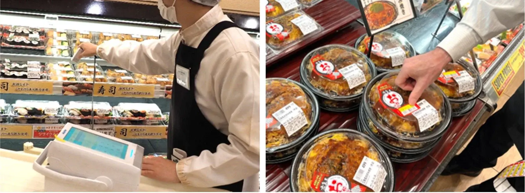 • AIが販売実績や天候から最適な値引率を算出し、スキャンのみでシール発行まで完結