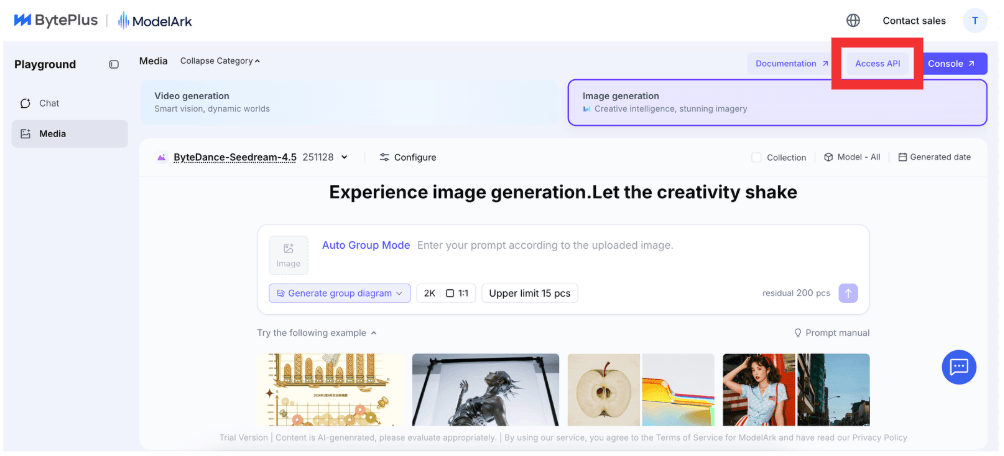 SeedreamはBytePlus ModelArkのブラウザ画面から利用できるほか、開発者向けAPIも提供されています。
