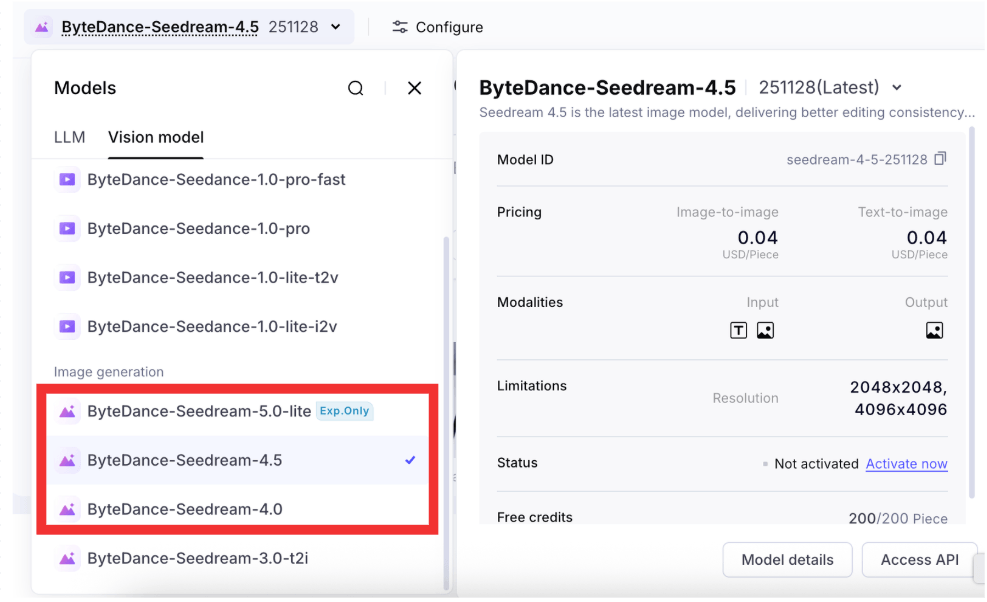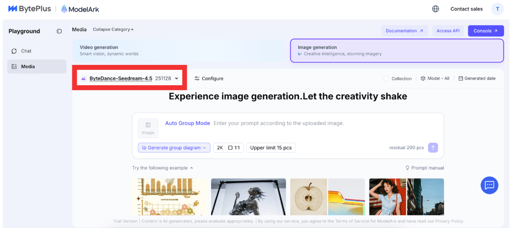 SeedreamはBytePlus ModelArkのブラウザ画面から利用できるほか、開発者向けAPIも提供されています。