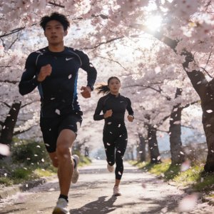 生成完了後はプレビューで確認し、高解像度のままダウンロードできます。静止画を動画へ変換する機能も利用可能です。実際に「桜並木の中を二人のスポーツマンが走っています」というプロンプトで生成してみました。