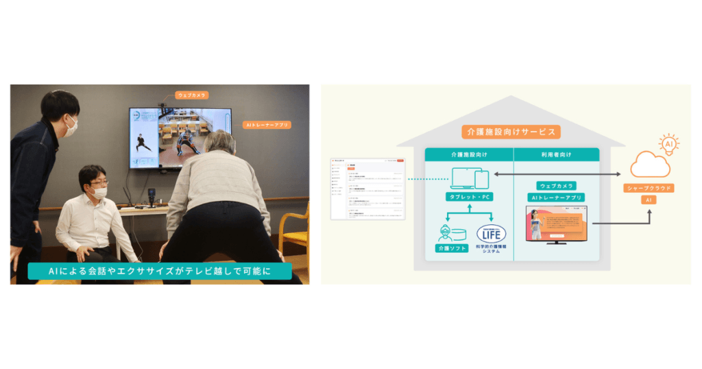 シャープ株式会社は、AIとテレビを活用し、介護施設における高齢者の機能訓練に関わる一連の業務をサポートする「介護向け AIトレーナー」を開発しました。