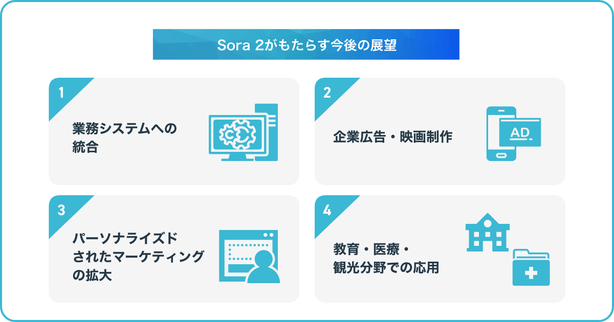 Sora 2は、AIによる映像制作の自動化を大きく前進させました。将来的には、以下のような進化が期待されています。