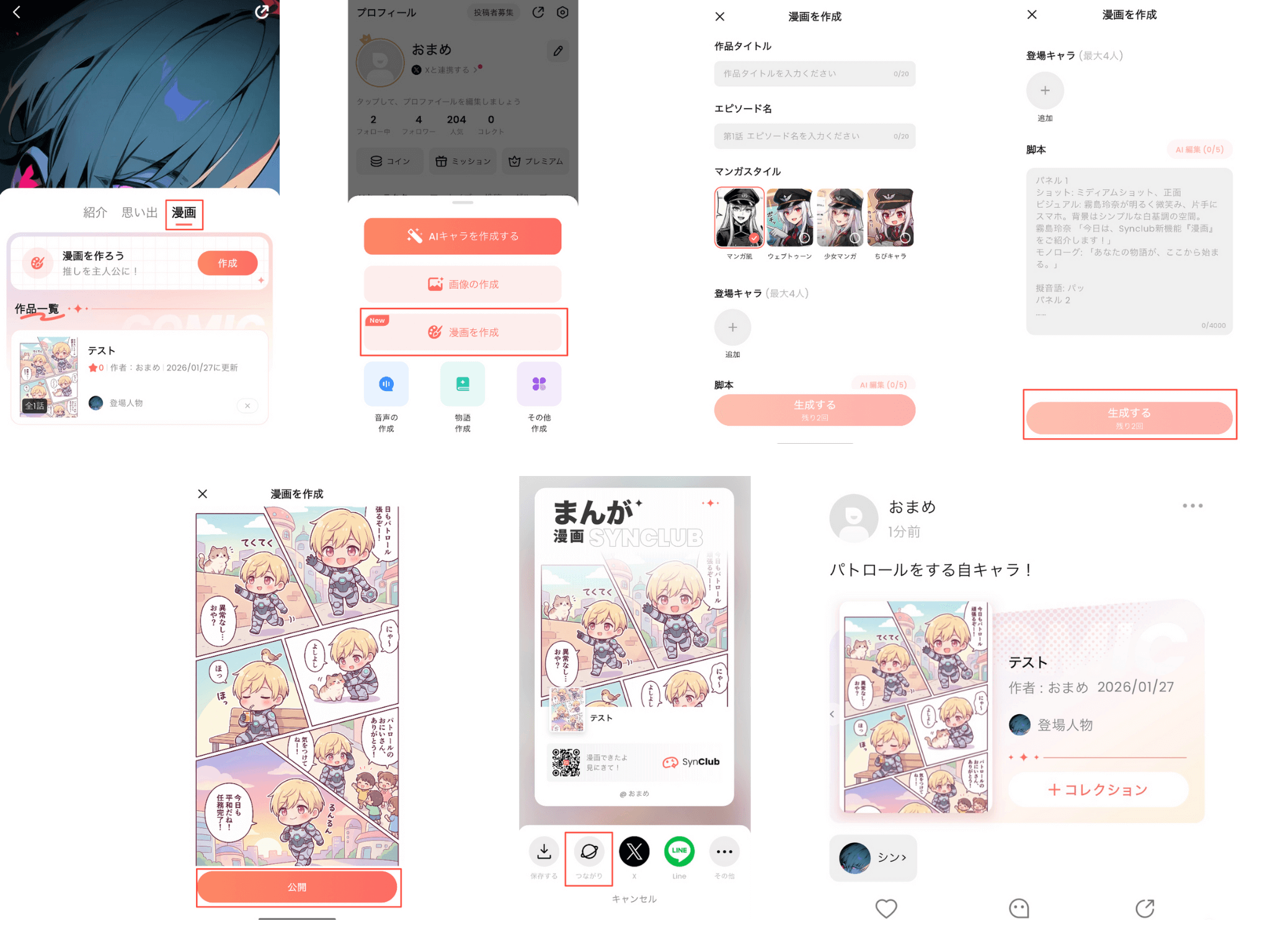 • 「SynClub」、オリジナルの漫画を作成できる新機能「漫画生成」をリリース