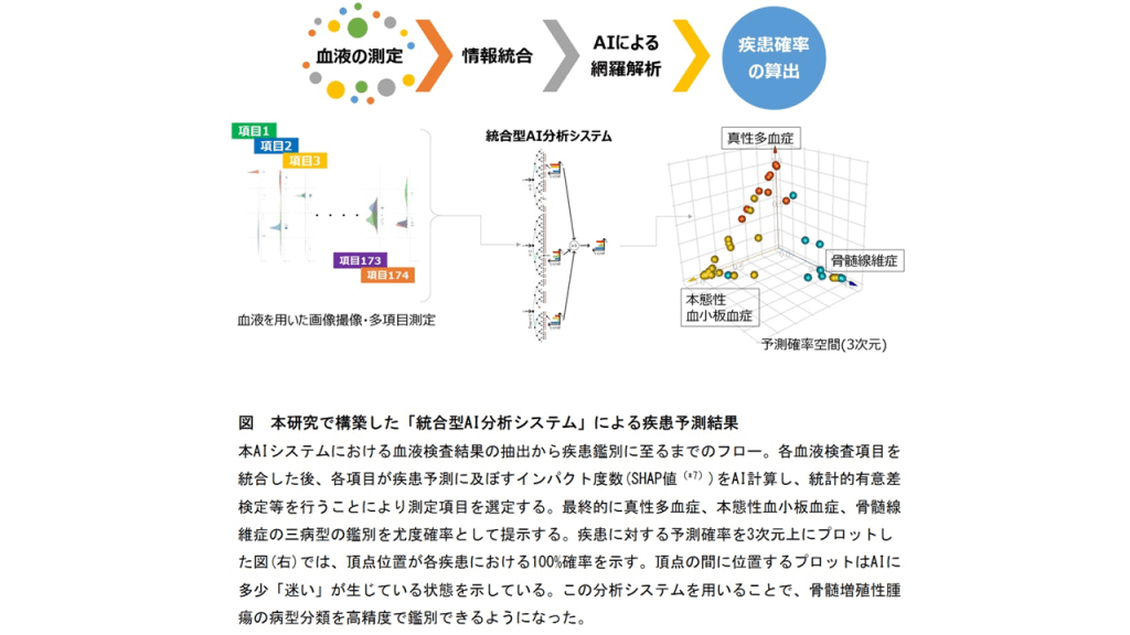 今後、骨髄増殖性腫瘍の鑑別にあたってAI自動分析技術による末梢血を用いた迅速で簡便なスクリーニング検査・診断支援への応用につながると期待されます。