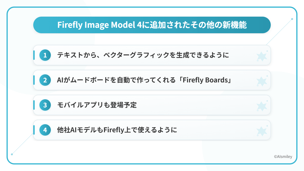 動画生成が可能になったことはもちろん、Adobeならではとも言えるベクターグラフィックの生成や、AIによるムードボードの自動作成、今後提供予定のモバイルアプリなど、まだまだ進化が止まりません。