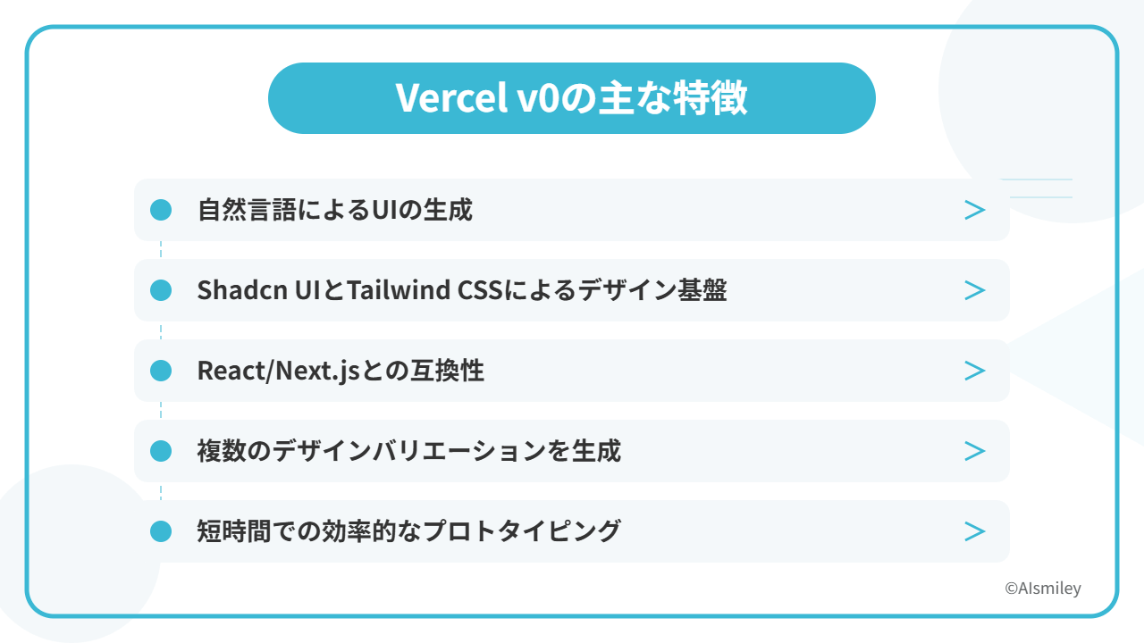 Vercel v0は、デザイナーやプログラマーが効率よくUIを生成するための機能を備えています。
