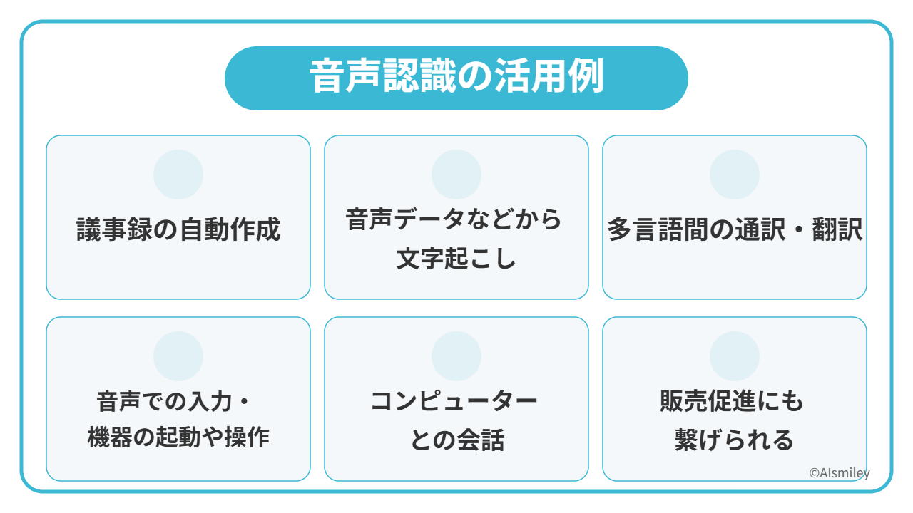 ここでは、音声認識の活用場面として以下の活用例を紹介します。