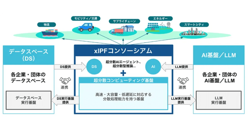 このような課題に対し「xIPFコンソーシアム」は、超分散コンピューティング基盤「xIPF(cross Integrated Platform)」を中核とし、企業と団体が持つAI基盤やLLM、データスペースの連携を目的としています。