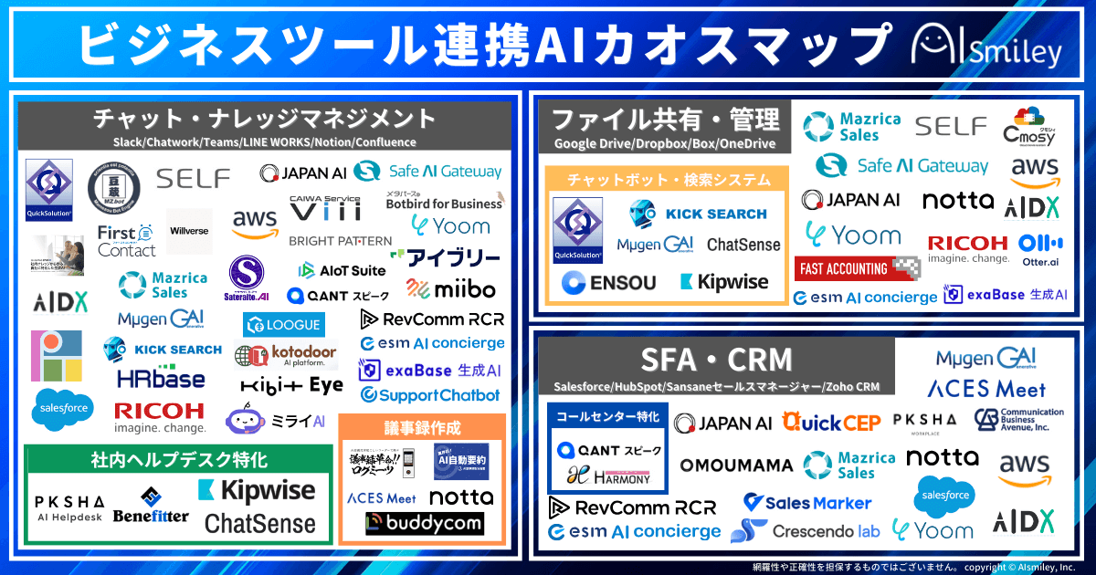 「ビジネスツール連携カオスマップ–いつものビジネスツールとAIを連携させ、業務効率を劇的に向上させるソリューション101製品–」を公開!無料で資料請求できます。