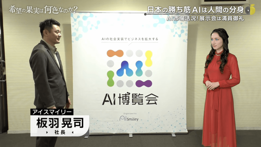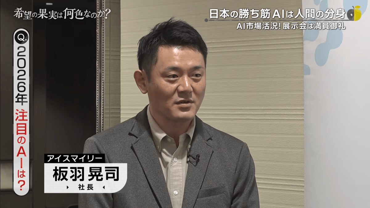 番組内では会場の様子に加え、代表の板羽のインタビューも紹介されています。