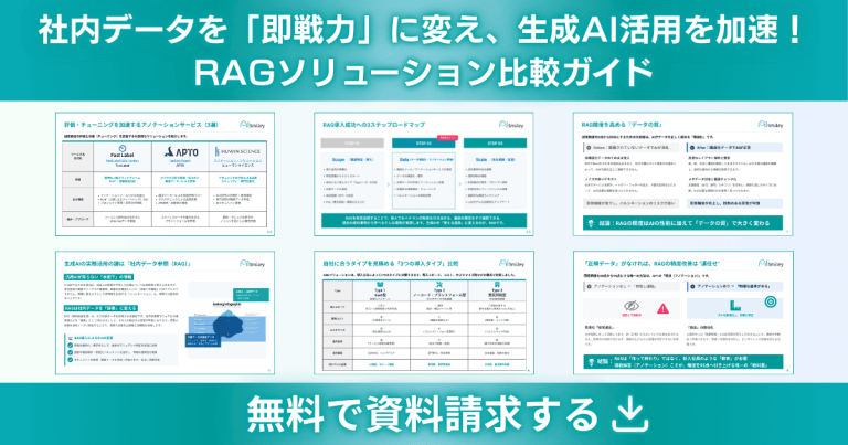 国内最大級のAIポータルメディア『AIsmiley』を運営する株式会社アイスマイリー(東京都渋谷区、代表取締役:板羽晃司)は、RAGサービスの比較から導入タイプ診断、回答精度の向上やアノテーションについて解説した資料「RAGソリューション比較ガイド」を2026年2月5日(木)に公開しました。