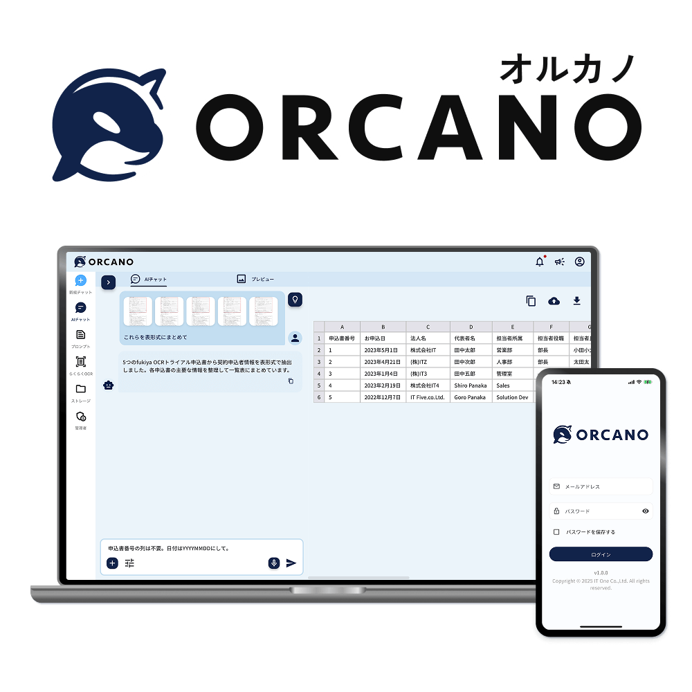 ORCANO(オルカノ)は、紙・PDF・画像・Excel/CSVを自然言語で即整形・標準化。項目ゆらぎを自動判別し、指定テンプレートへ一括変換。書類業務の負担を軽減します。