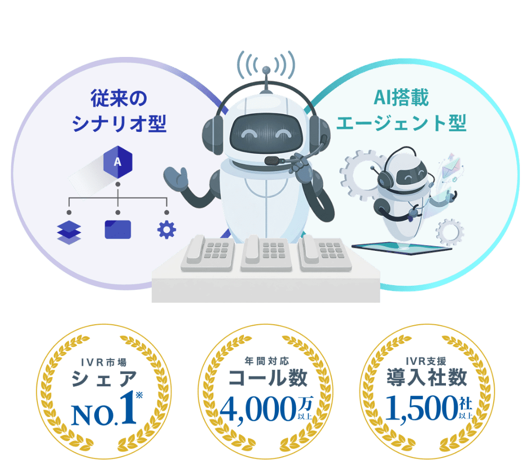IVR市場シェアNo.1。導入実績1,500社以上、年間4,000万コール対応。電話業務の課題をノーコードAIエージェントDHK CANVASが解決。シナリオ型からAIエージェントまで、設計から運用改善まで伴走します。