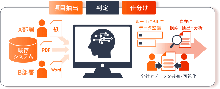 文書から情報を抽出する作業や判断・仕分けに人手がかかる